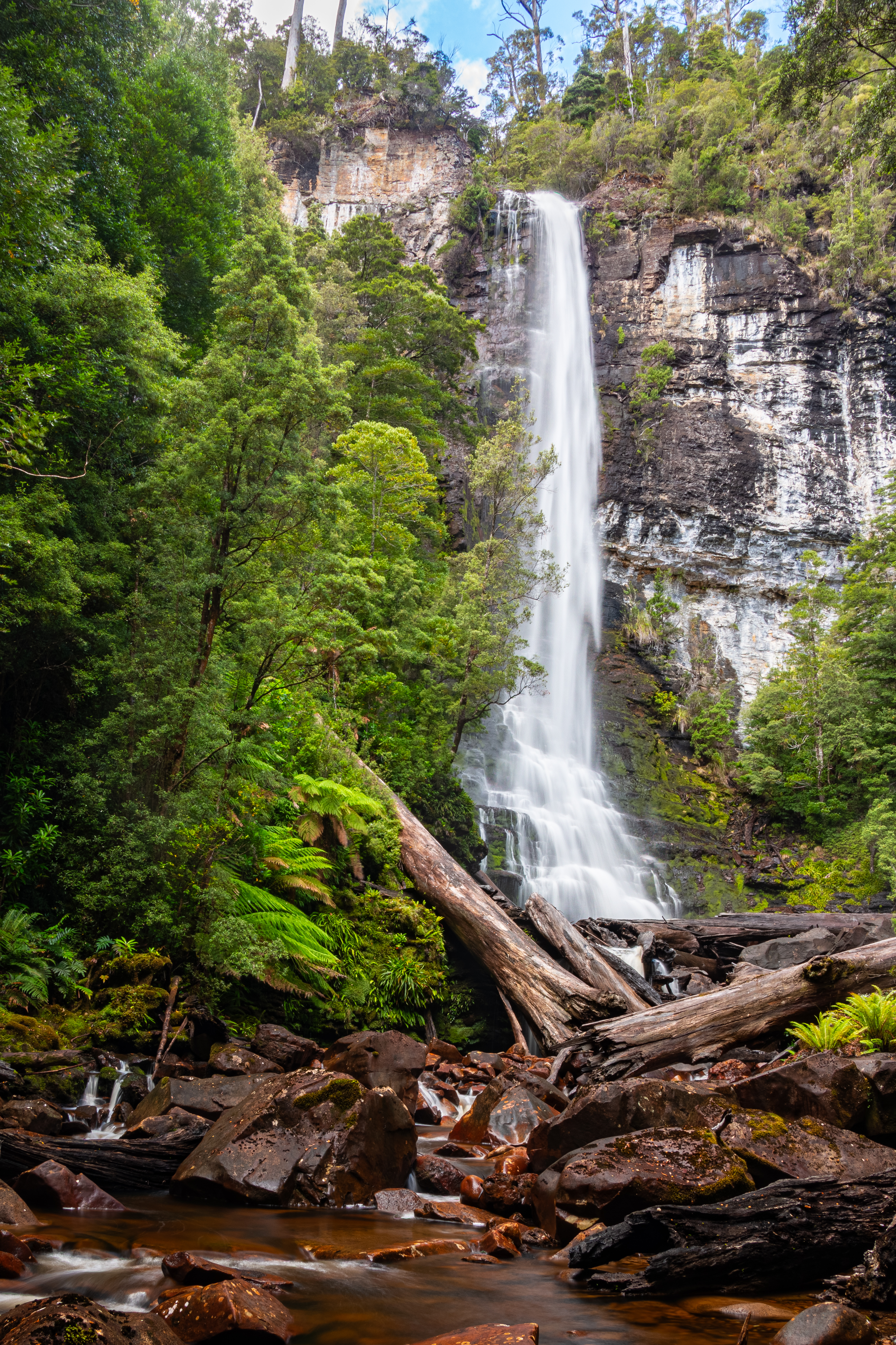 A short distance below the impressive Julia Falls is Lower Julia Falls, a smaller but still impressively powerful 10 metre plunging waterfall. Despite being no more than 100 metres below the upper falls, the terrain on either side of the creek adjacent to the lower falls is far too dangerous to attempt to navigate, so access is only possible from downstream, while the upper falls can only be accessed from above.